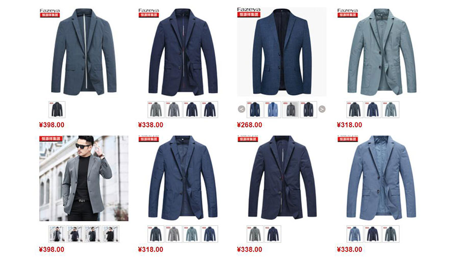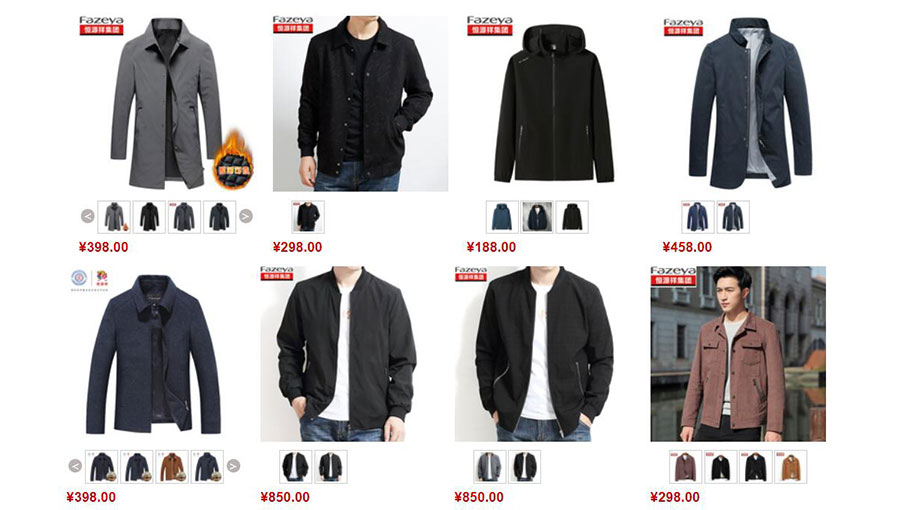 主要產品:Fazeya西服、夾克、褲子、襯衫、內衣