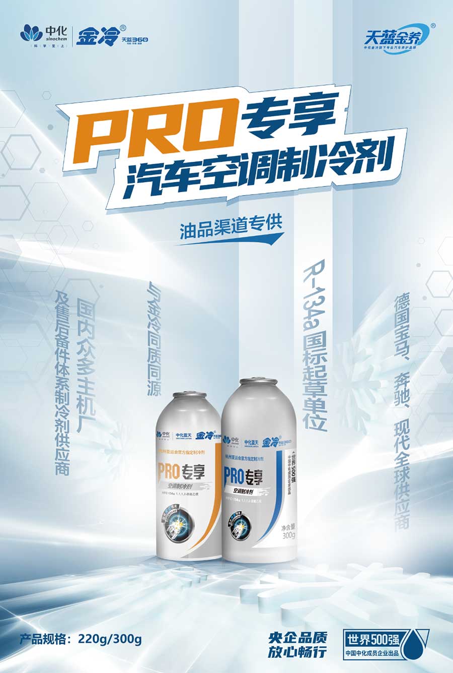 經過多年的發展,金冷現已成為綜合性汽車化學品服務商。其產品品類不斷豐富,除原有的制冷劑主打產品,還包括:潤滑油、防凍冷卻液、剎車油、管道清洗劑、零部件清洗劑、金衛士等四十多個品類,全面倡導“以養代修”、“0”顧慮出行的用車生活理念。