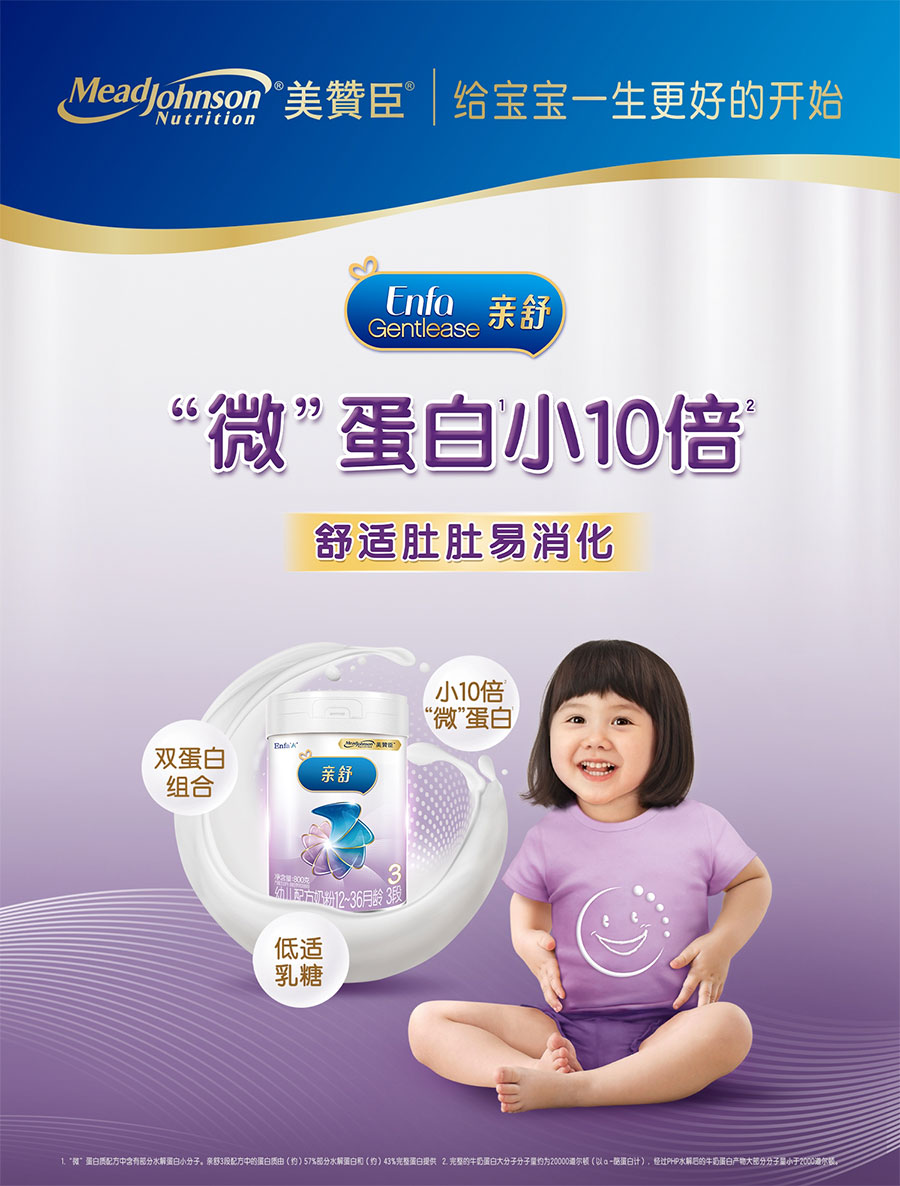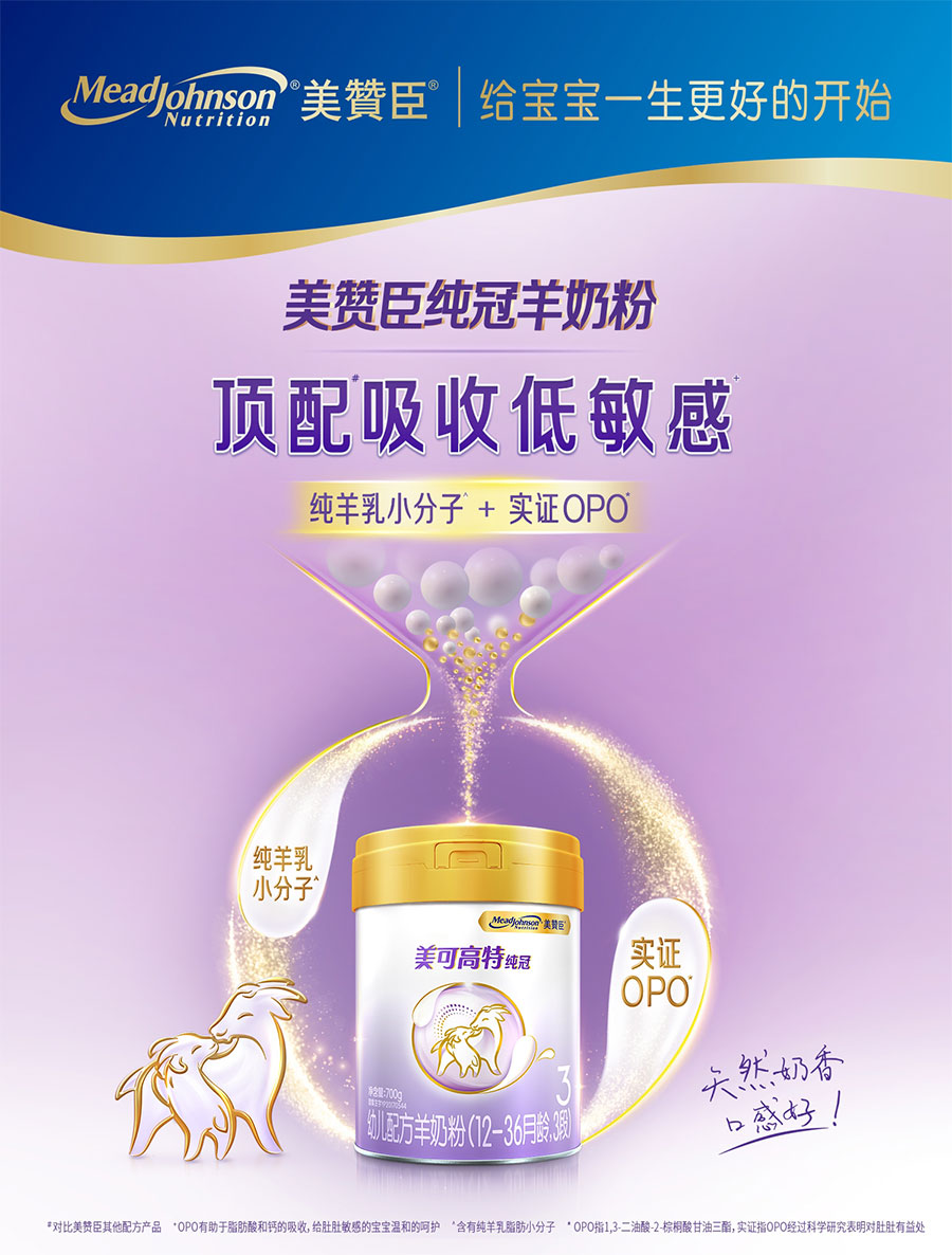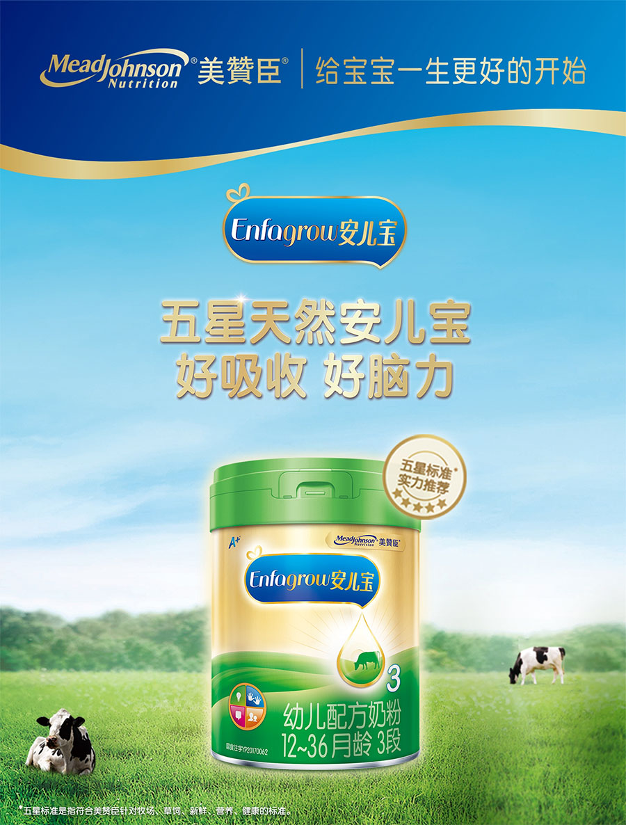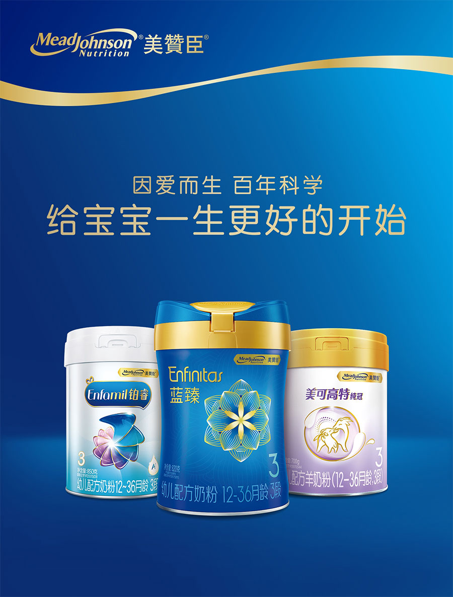 美贊臣創立于1905年,自創立起始終堅持以科學為本進行產品研發和創新,為全球嬰幼兒提供科學營養,致力于“給寶寶一生最好的開始”。1993年,美贊臣正式進入中國,在廣州設立生產基地。植根中國近三十載,陸續推出藍臻、鉑睿、安兒寶、全躍、親舒、早產兒出院后配方、無乳糖配方等消費者熟悉的嬰幼兒配方產品,每天守護寶寶健康成長,受到廣大中國消費者的歡迎和喜愛。