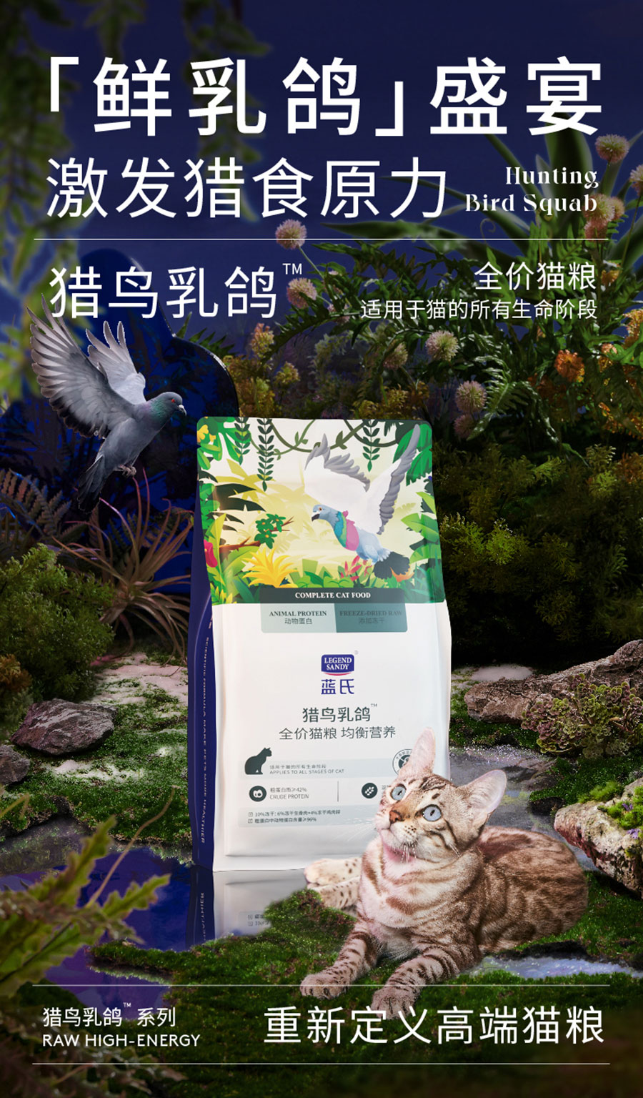藍氏明星產品“獵鳥乳鴿均衡營養全價貓糧”首創乳鴿配方添加17%鮮乳鴿,獨特甜甜圈夾心顆粒工藝,為同質化貓糧市場增加更多可能性!自2021年上市全網銷量超500萬包,藍氏乳鴿糧也是國家飼料博物館收錄的首款貓糧,曾3次蟬聯天貓貓糧榜單TOP1,該產品與“老爸抽檢”合作,從產品原料、生產過程和產品品質對產品進行多項認證檢測,為藍氏構建全方位立體化的產品價值承諾!