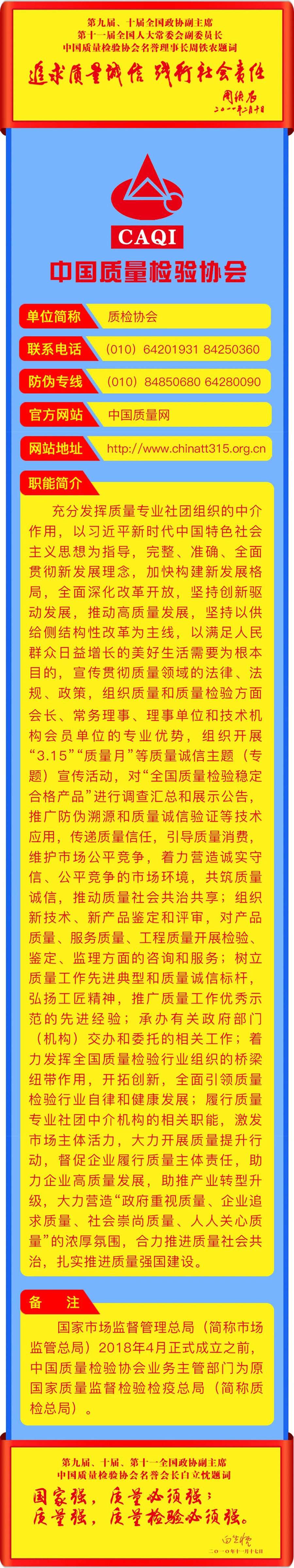 李克強總理批示指出,打造集質(zhì)量、標準、技術(shù)、品牌等于一體的高品質(zhì)產(chǎn)品和服務(wù),在市場競爭中鍛就中國質(zhì)量、培育中國精品。倡導企業(yè)對產(chǎn)品和服務(wù)質(zhì)量作出誠信倡議,也是中國質(zhì)量檢驗協(xié)會自2004年以來組織開展全國“質(zhì)量月”企業(yè)質(zhì)量誠信倡議專題活動的要義。謹期社會各界共同努力,推進質(zhì)量社會共治,抓好產(chǎn)品和服務(wù)的高品質(zhì)質(zhì)量提升,共同為我們的質(zhì)量強國事業(yè)去奮斗!