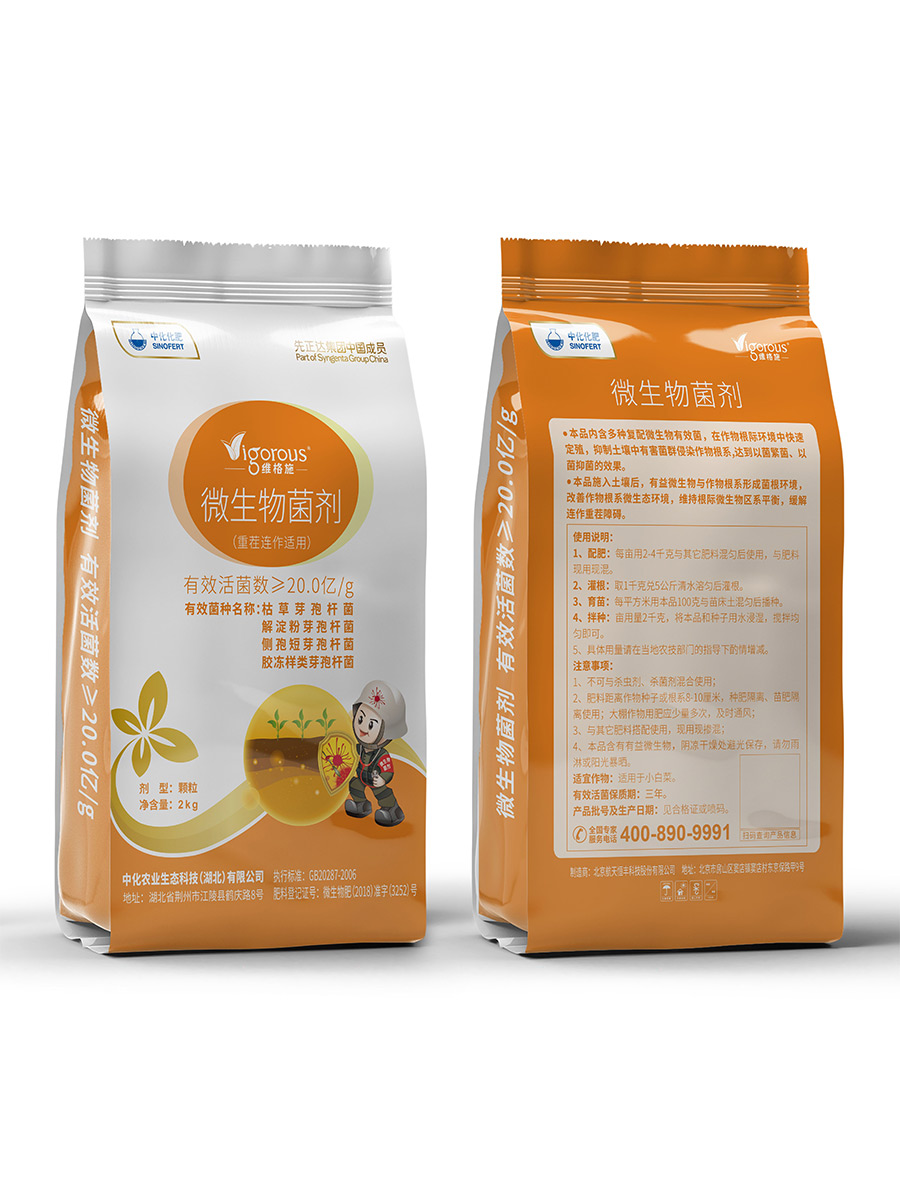 維格施農用微生物菌劑,內含有豐富的抗重茬生防型微生物,與作物根系形成“菌-根”環境,改善作物根系微生態環境,抑制土壤中有害菌群侵染作物根系。生物激活技術增強根系活力和生根能力,促進根系生長發育。