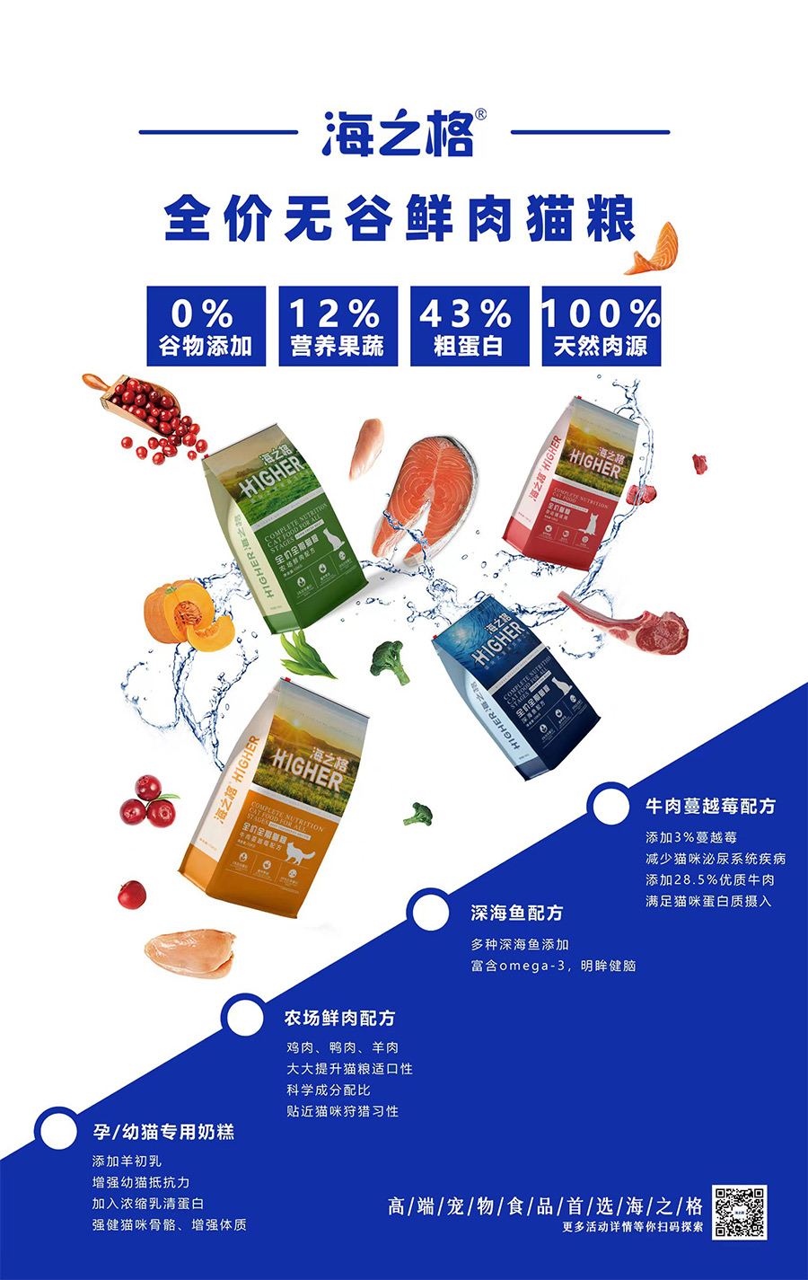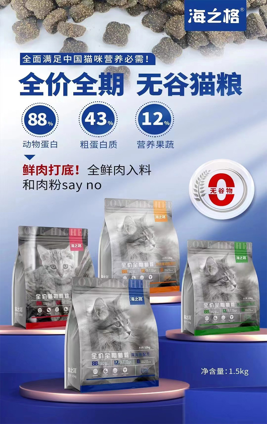 海之格秉持品質第一的原則,產品原料嚴選天然有機食材,與高標準生產工藝相結合,根據中國寵物健康和營養需求,為愛寵提供高品質生活,打造更安全、營養、貼心的產品和服務。