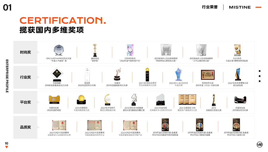 MISTINE蜜絲婷提出皮膚科學、前沿科技、靈魂成分、熱帶美學、卓越功效、保護環境六大品牌價值,致力于為全球女性提供豐富、安全、高品質的美妝產品。基于MISTINE蜜絲婷品牌首席科學顧問——全球計算生物學權威之一、諾貝爾化學獎得主Arieh Warshel的研究,MISTINE蜜絲婷創新防曬品類推出「光生物學」防曬系統,提出“外層防護、中層修護和底層抗損”防曬新理念,引領防曬從“表面防護”進入“深度抗光老”新時代。同時,MISTINE蜜絲婷還持續深耕專業彩妝市場,以熱帶美學基因造就產品防水防汗、高倍耐曬、長效持妝的優勢,圍繞消費者需求打造多元化的產品矩陣,引領防曬、底妝賽道發展。