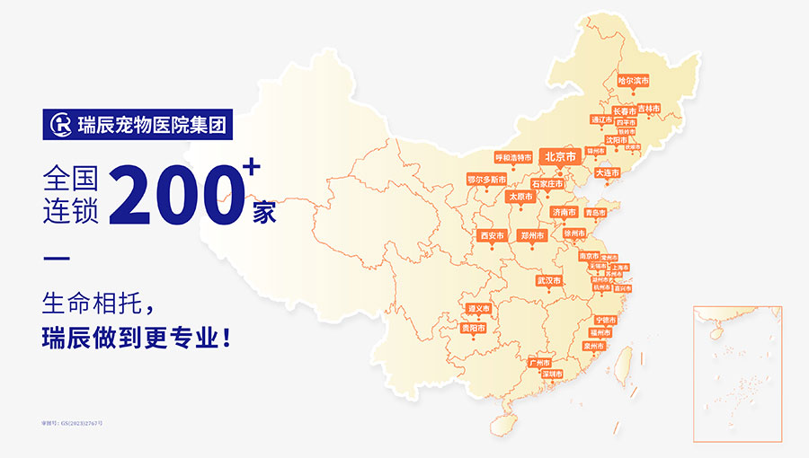 瑞辰寵物醫(yī)院集團(tuán)由晨壹基金、KKR集團(tuán)、愛爾眼科及少量國有資本等投資機(jī)構(gòu)共同投資。集團(tuán)現(xiàn)已完成B輪融資,在全國超50個(gè)大中城市擁有200+家優(yōu)秀寵物醫(yī)院。截至2024年6月,集團(tuán)旗下醫(yī)院覆蓋區(qū)域包括北京、河北、山西、內(nèi)蒙古、遼寧、吉林、黑龍江、上海、江蘇、浙江、福建、山東、河南、湖北、廣東、貴州與陜西等地。以良好發(fā)展態(tài)勢(shì)為依托,聚焦行業(yè)市場,集團(tuán)合理規(guī)劃在全國重點(diǎn)區(qū)域優(yōu)先集中建設(shè)寵物轉(zhuǎn)診中心醫(yī)院和國際化寵物醫(yī)院的戰(zhàn)略布局,致力于保障中國萬千家庭的寵物健康。