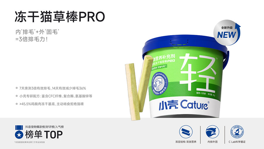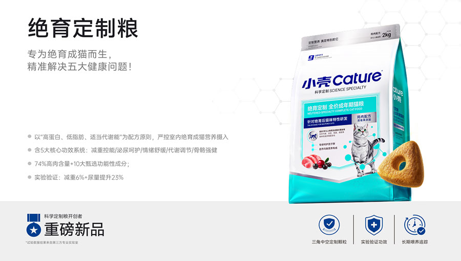 主要產品:小殼絕育定制糧,小殼皮膚毛發定制糧,小殼免疫呵護定制糧,小殼功能主食罐系列(小殼排毛主食罐,小殼魚油主食罐),小殼小輕松凍干棒系列(小殼貓草棒pro,小殼魚油棒pro)