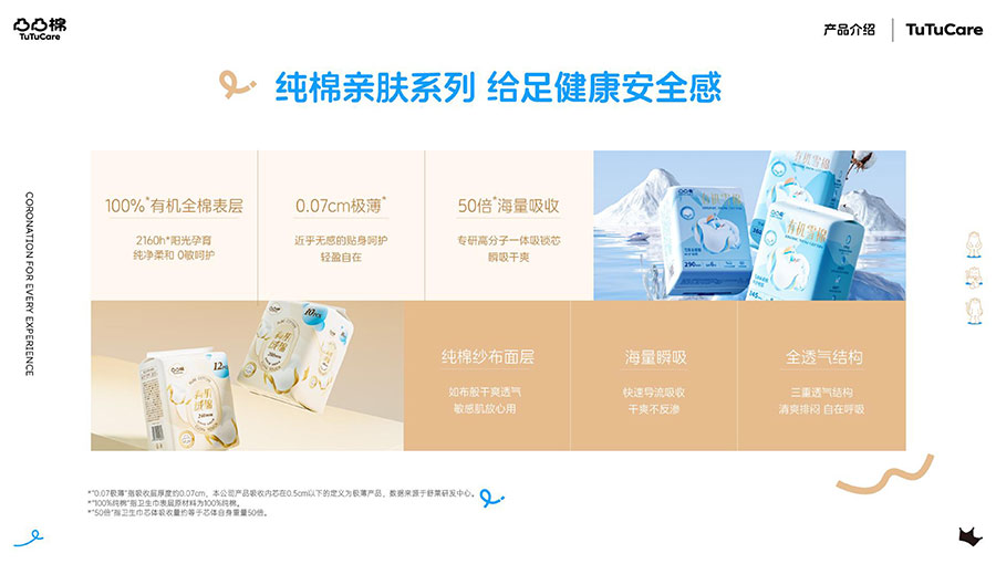 河南舒萊衛生用品有限公司旗下擁有舒萊、凸凸棉、純也、優月季等品牌,產品涵蓋衛生巾、安睡褲、護理液等品類。其中,舒萊品牌:S.H.E.CARE經期健康管理體系,從科學、健康、舒適三大維度全方位呵護女性經期健康。舒萊“輕養護”以漢方調養為根基,以科學抑護為本色,全方位調節女性經期健康指數,輕松實現經期護理;凸凸棉品牌:獨創A.C.E.CARE品質管理體系,以Air Tech干爽透氣、Comfort Tech舒適體感、Ecology Tech安全衛生為核心,打造更懂女性的護理體驗。