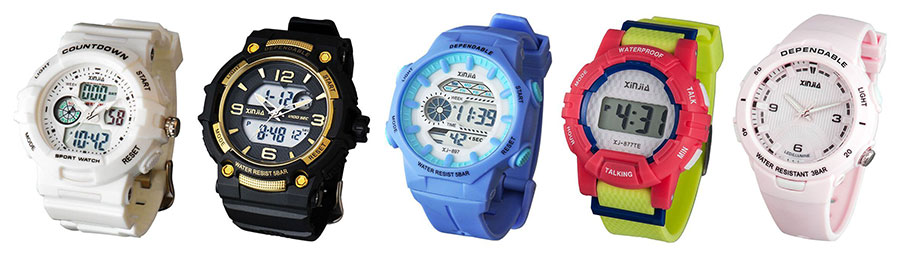 主要產(chǎn)品:“信佳”牌冷光防水運(yùn)動(dòng)表、行針數(shù)顯二合一手表、計(jì)算器表、語(yǔ)音報(bào)時(shí)表、電子表、電子鐘