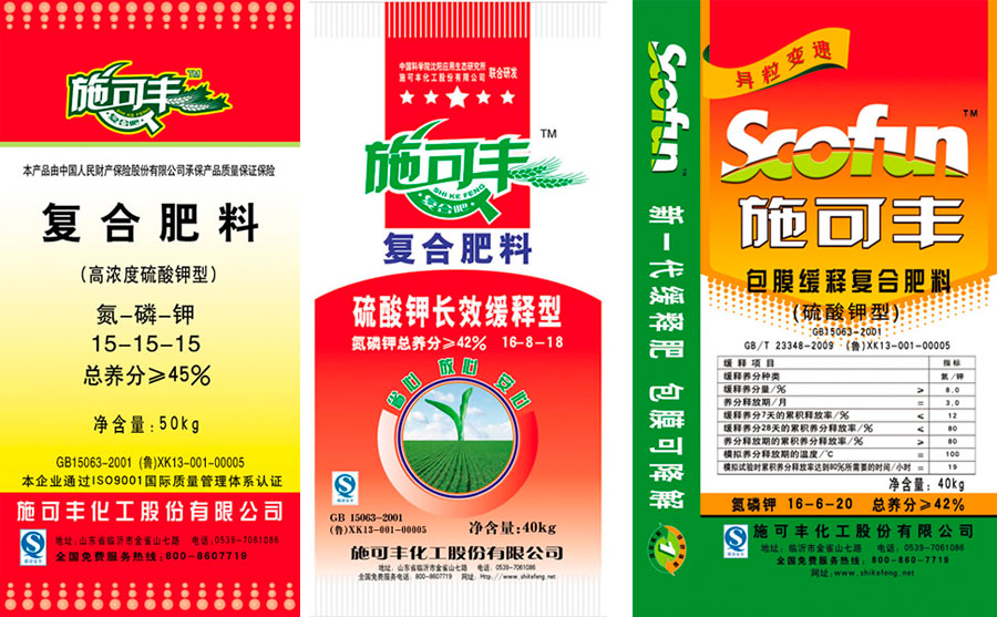 公司主導產品施可豐牌復合肥是采用國內最新工藝配方及檢測標準,選用大量進口原料,利用低溫轉化中和噴漿造粒法、氨化造粒法生產的優質高效肥料,具有濃度高、養分全、易吸收、肥效長、改良土壤、提高果實品質和增強作物抗病能力等特點,適用于小麥、水稻、玉米、棉花、大豆、花生、蔬菜、果樹、花卉等,是發展無公害農產品的理想肥料。“施可豐”牌復合肥被評為“山東名牌產品”“中國農民喜愛的農資品牌”稱號,“農化服務明星企業” “中國農資行業最具價值品牌”等榮譽稱號。
