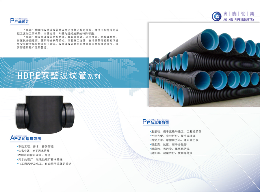 主要產(chǎn)品:PE管材管件、PE雙壁波紋管材等