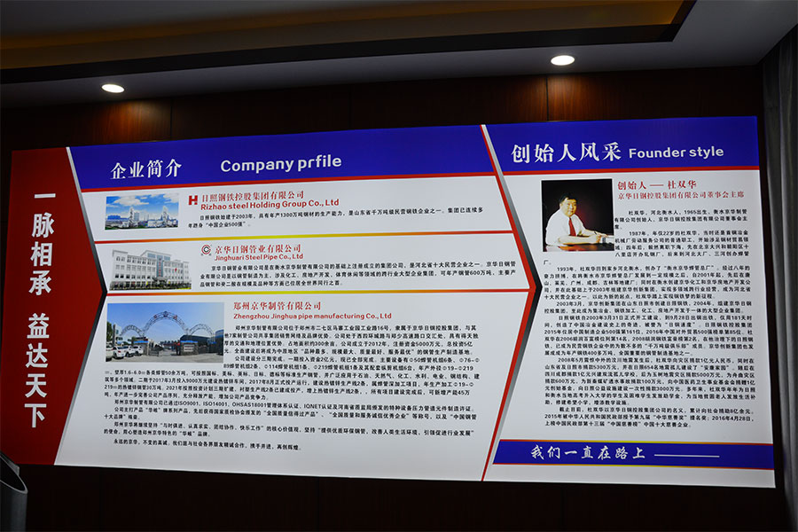 鄭州京華制管有限公司成立于2012年,注冊資金5000萬元,總投資5億元,位于鄭州市二七區馬寨鎮工業路16號,隸屬于京華日鋼控股集團有限公司,與其他8家制管公司共享集團銷售網絡及品牌優勢,占地面積約400畝,被譽為中原地區“品種最多、規模最大、質量最好、服務最優”的現代化鋼管生產制造基地。主要設備有Φ50焊管機組6條、Φ76-Φ89焊管機組2條、Φ114焊管機組1條、Φ219焊管機組1條、熱鍍鋅生產線4條、襯塑生產線2條,年產銷外徑Φ19-Φ219㎜、壁厚1.6-6.0㎜的各類鋼管60余萬噸。可按照國標、美標、英標、日標、德標等標準生產鋼管,產品廣泛應用于石油、天然氣、化工、水利、電力、熱力、建筑等多個領域。