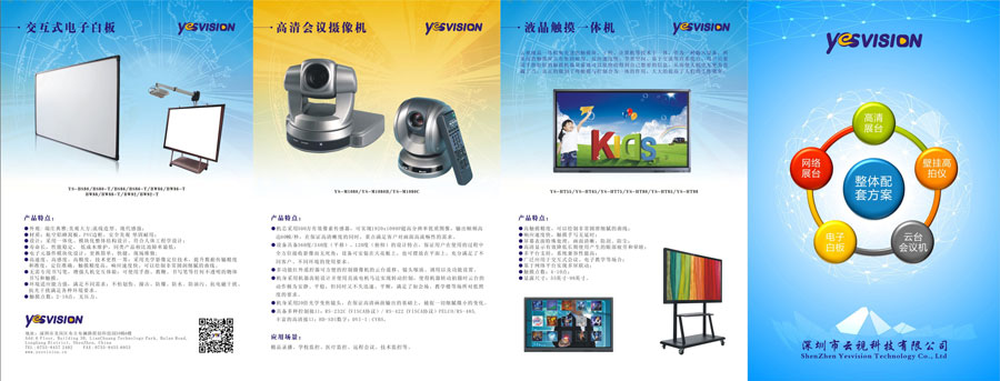 主要產品:云視牌高清實物展臺、高拍儀、交互式電子白板、智能終端一體機、高清攝像機、音箱