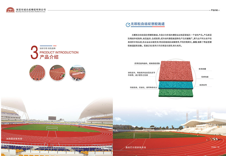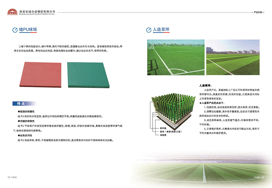主要產(chǎn)品:長城牌塑膠跑道、塑膠球場、硅PU球場、健身步道系列產(chǎn)品
