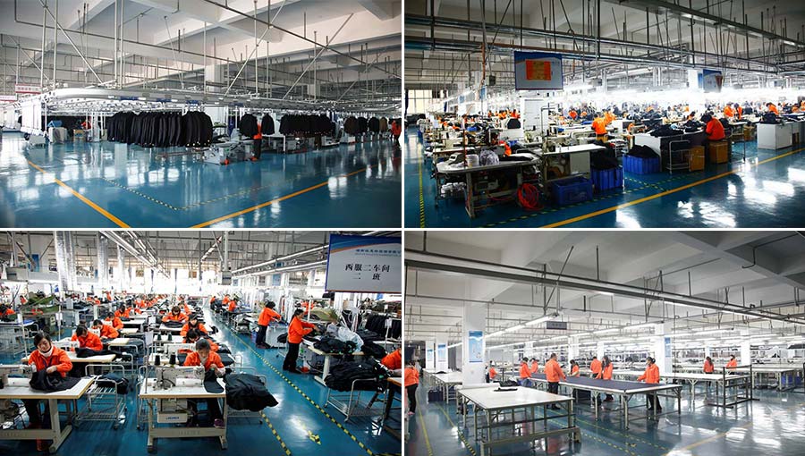 派意特公司擁有全套德國、意大利、日本引進的高檔西服和制服專業生產設備,國際一流的先進高檔西服成套生產流水線,具備年產高檔西裝1百萬套件、團體服裝3百萬套件,共計年產各類服裝4百萬套件的生產能力,過硬的硬件控制確保了產品的品質以及產品按期交貨。