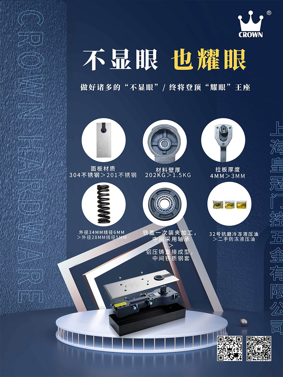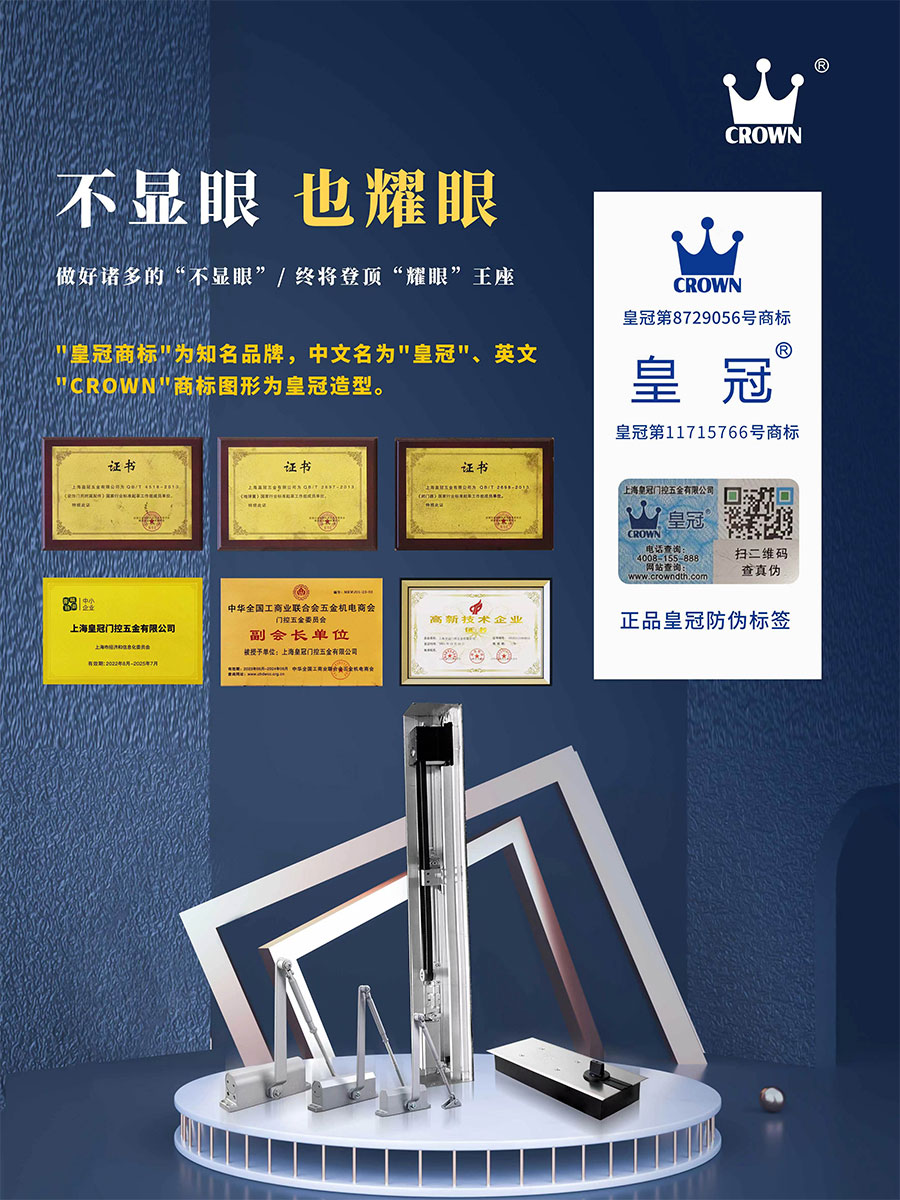 作為中國商用門控品牌早期開拓者之一,上海皇冠品牌創始于1986年,38年來不斷革新,致力于為商用領域合作伙伴提供以安全為保障的門控五金產品。