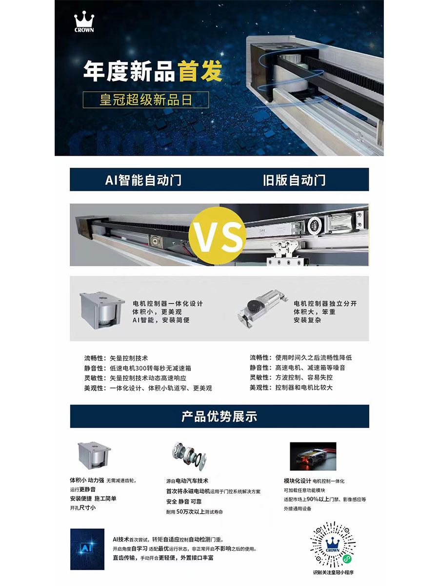 皇冠智能時代應運而生,皇冠AI自動門首次嘗試AI技術運用到自動門系統中,引領自動門走向智能時代。