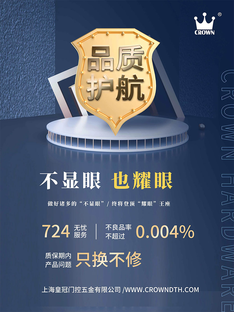 皇冠經過30多年的努力,建立了完善、高效、和諧的產品供應鏈體系,皇冠把品質放在第一位,品質是企業的第一生命,建立了科學的生產品質管理體系,皇冠通過30多年的門控五金操作經歷,讓皇冠在門控體系建設中變得強大,皇冠非常注重服務的建設,經過大量的實踐,建立了成熟的服務體系。