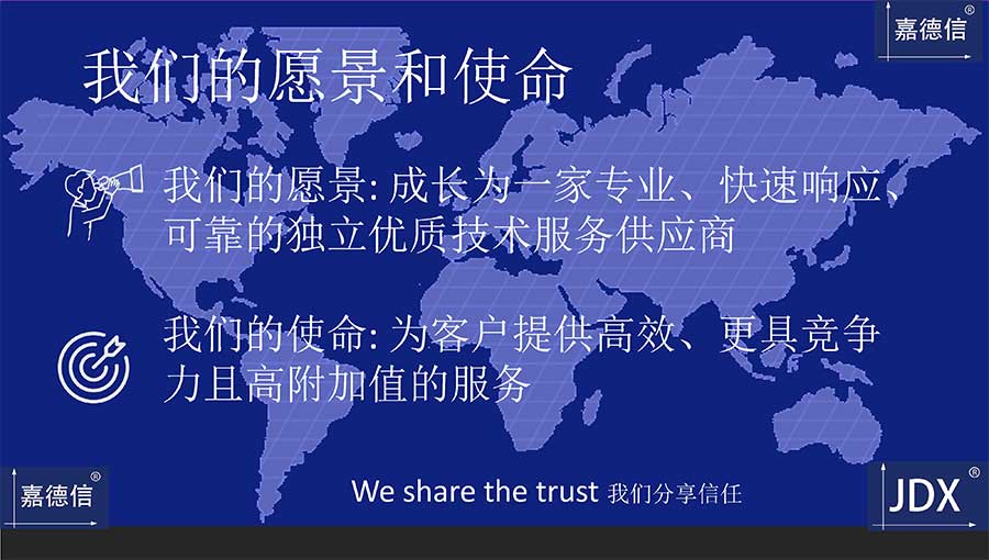 嘉德信的愿景:成長(zhǎng)為一家專業(yè)、快速響應(yīng)、可靠的獨(dú)立優(yōu)質(zhì)技術(shù)服務(wù)供應(yīng)商。
