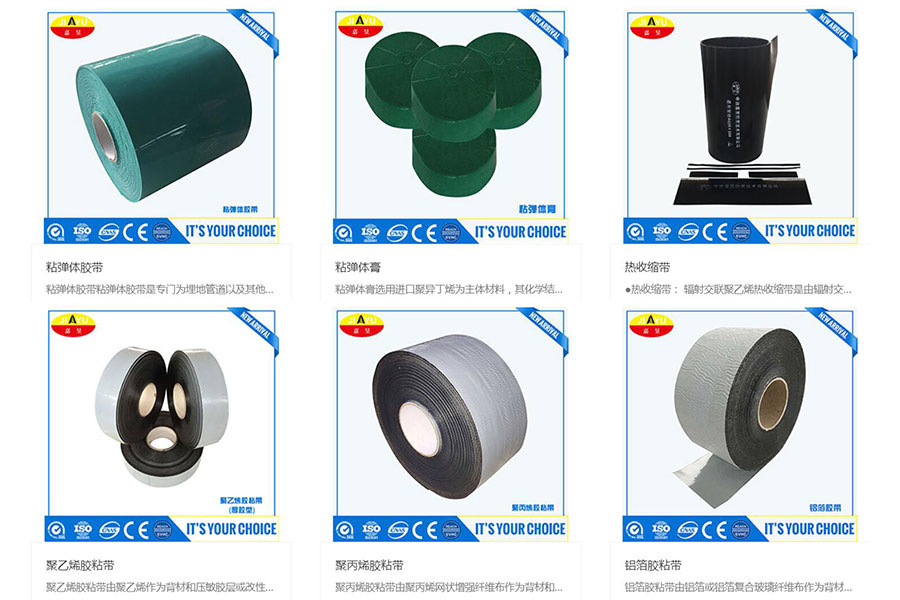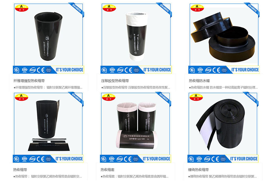 主要產(chǎn)品:嘉昱聚乙烯熱收縮套、聚乙烯熱收縮帶、聚乙烯膠帶、增強(qiáng)纖維聚丙烯膠帶、鋁箔膠帶、防水帽、補(bǔ)傷膠、補(bǔ)傷片、粘彈體防腐膠帶、粘彈體防腐膏、壓敏膠復(fù)合熱收縮帶、夾克底膠、絕緣支架等
