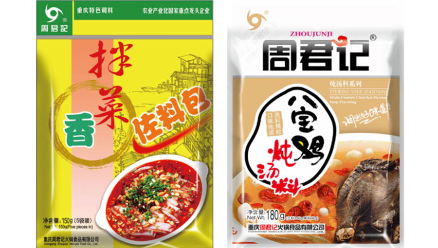 重慶周君記火鍋食品有限公司主要以生產(chǎn)和銷(xiāo)售“周君記”牌重慶火鍋底料系列、麻辣香水魚(yú)底料系列、拌菜香佐料系列、藥膳滋補(bǔ)燉湯料系列、速溶增味營(yíng)養(yǎng)火鍋底料系列、川味菜、川味面調(diào)料等復(fù)合調(diào)料、免燒中國(guó)菜系列及休閑食品為主。在重慶、四川、中國(guó)香港以及全國(guó)的多個(gè)省市縣地區(qū)有著多年的美譽(yù),其產(chǎn)品已遠(yuǎn)銷(xiāo)中國(guó)臺(tái)灣、中國(guó)香港、歐美、日韓、東南亞、北美、澳洲等國(guó)家和地區(qū)。