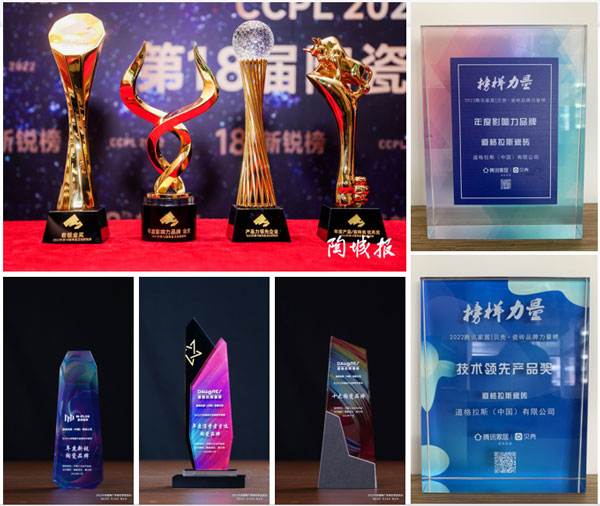 年初,道格拉斯便獲得了“全國質量檢驗穩定合格產品”、“全國質量信譽保障產品”、“全國產品和服務質量誠信領先品牌”、“全國瓷磚行業質量領先企業”、“全國瓷磚行業質量領先品牌”和“全國產品和服務質量誠信示范企業”六項國家級質量認證。隨后,道格拉斯不斷地獲得行業的嘉許,包括新銳榜“影響力品牌金獎”、“產品力領先企業”、“年度產品優秀獎(數碼釉—簡素時光系列)”、“榮獲巖板金獎(1200*2600*9原素系列)”;《榜樣力量》騰訊家居|貝殼·瓷磚品牌盛典“年度影響力品牌”、“技術領先產品獎”;陶瓷行業年度榜單“十大陶瓷品牌”及“年度消費者首選陶瓷品牌”;中國意大利陶瓷設計大賽“創意優秀獎(意尚瓷磚-恒久系列)”等多個獎項。