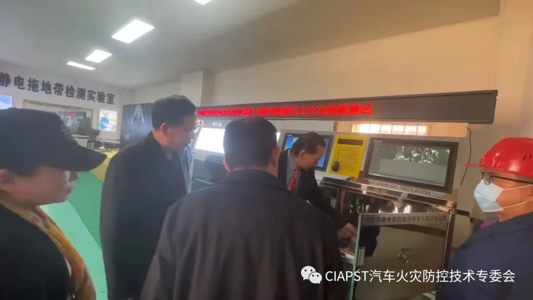調研組首先了解企業的設立和發展等相關工作情況。隨后來到“大映谷實驗室”,觀摩汽車導靜電橡膠拖地帶旋轉摩擦試驗過程,對試驗過程未產生火花的復合金屬材料給予肯定,該項技術突破行業技術瓶頸、解決行業技術難題,一定程度上促進了產業的新升級。另外,參觀了機動車排氣火花熄滅器火花熄滅性能試驗機、道路運輸危險貨物車輛標志燈發光質量試驗裝置。進而觀摩考察大映谷汽車火災防控裝備新工藝、新技術、新裝備。王明文介紹:新一輪科技革命和產業變革深入發展,物聯網、大數據、人工智能等高科技在消防領域深度集成應用,大幅降低消防安全風險,有效提升了消防安全監測預警、監管執法、指揮決策、應急救援等能力,為消防工作轉型升級聚力賦能。