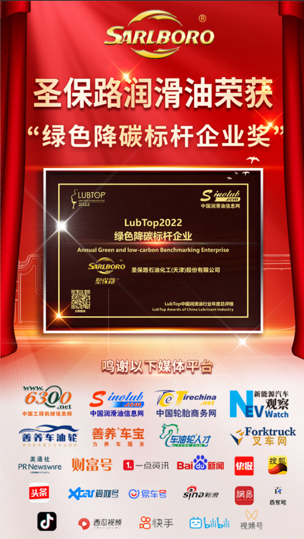 今日,被業(yè)界廣泛認為是由國際巨頭領銜、中國知名自主品牌共同參與并實現(xiàn)跨界融合的潤滑油行業(yè)“年度奧斯卡”——LubTop2022中國潤滑油行業(yè)年度總評榜全球開啟。圣保路憑借“節(jié)能降碳 綠色先行”發(fā)展戰(zhàn)略下的踐行成果獲得業(yè)界肯定,摘得“綠色降碳標桿企業(yè)”大獎。