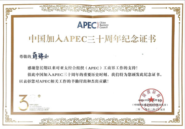 至今已得到逾60國政要貴賓青睞與認可,擔當著傳遞中國特色大國外交理念的茶文化使者,薛錦山于2021年獲得中國加入APEC三十周年紀念證書,于2022年被授予新時代中國經濟創新人物榮譽稱號。