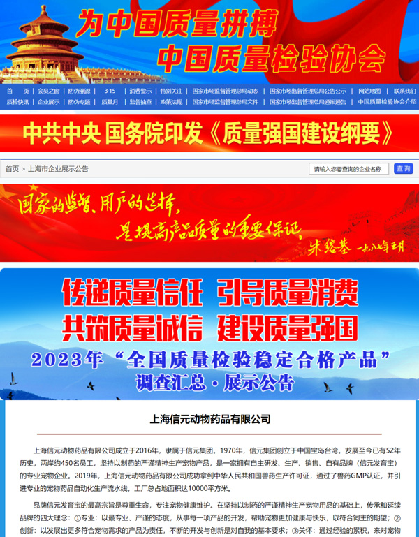 信元集團深知品質是企業生存的命脈與基石,產品質量安全是企業發展的第一要務。因此自成立至今始終堅守對品質的極致追求,堅持以制藥的嚴謹精神生產寵物產品,通過完善的品質管控體系和嚴格的檢測體系把控產品質量,為寵物提供全方位的健康養護。
