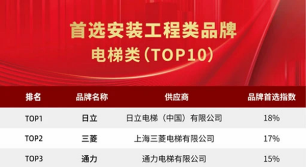 電梯類NO.1 日立電梯連續13年入選中國房地產首選供應商