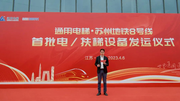 通用電梯蘇州地鐵8號線項目各執行部門均到場參加了發運儀式,執行總裁徐斌先生主持了發運儀式并做致辭。