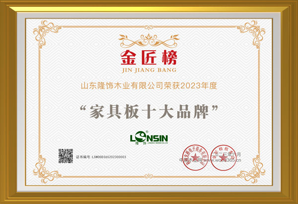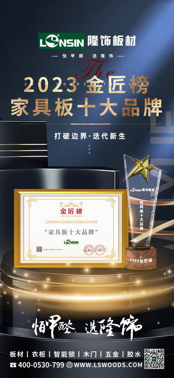 品牌加冕,榮耀所歸!隆飾板材斬獲“2023年度家具板十大品牌”榮譽獎項