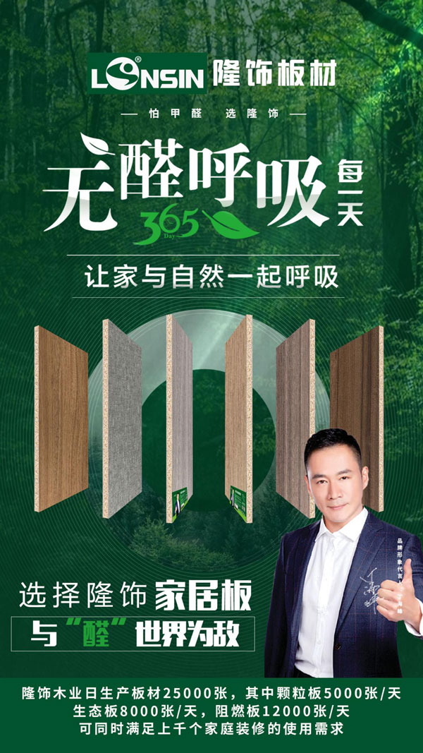 品牌的核心永遠是產品,質量高、設計優的產品才是品牌持續發展的基石。隆飾板材基于對環保的嚴格把控,從基材到產品工藝都用心研制。作為家具板十大品牌,隆飾板材始終已“怕甲醛選隆飾”為己任,不斷為廣大消費者提供高品質的板材產品,引領高品質生活理念和生活方式,為千家萬戶送去健康、個性、安全、舒適、美觀、幸福。