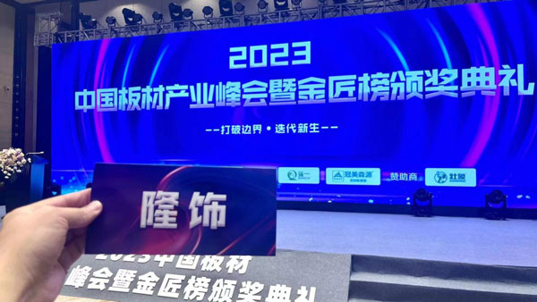 7月1日,中國木業網主辦的“2023中國板材產業峰會暨金匠榜頒獎典禮”于在杭州隆重開幕。本次峰會吸引了眾多行業精英和專家學者的關注,成為板材產業的盛事。在此次盛會上,備受矚目的隆飾板材憑借其卓越的產品力和服務力,榮獲家具板十大品牌的殊榮。
