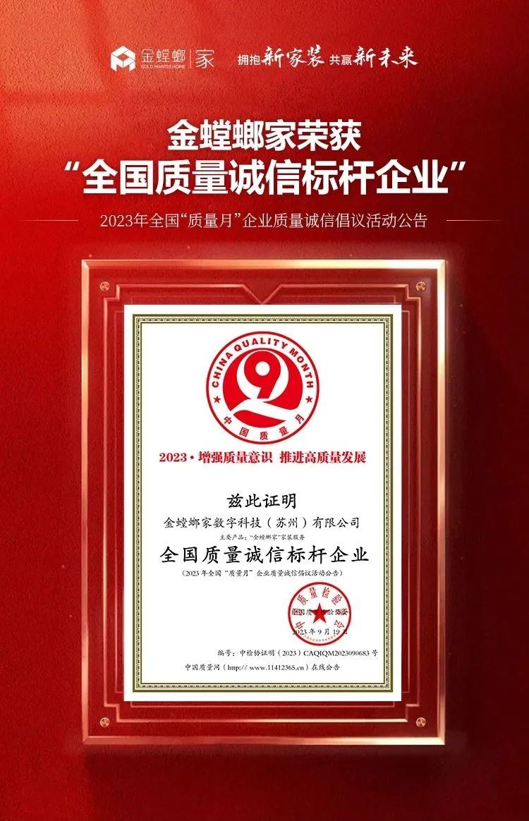 共筑質量誠信!金螳螂家再次榮獲「全國質量誠信標桿企業」榮譽稱號