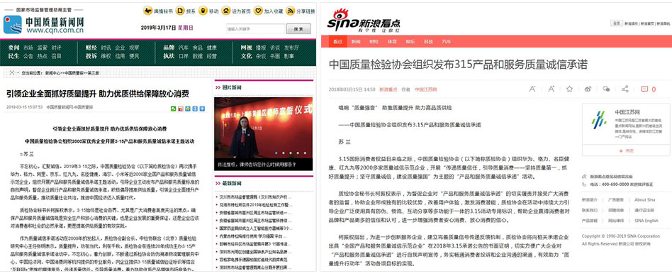 •新浪看點《中國質量檢驗協會組織發布315產品和服務質量誠信承諾》