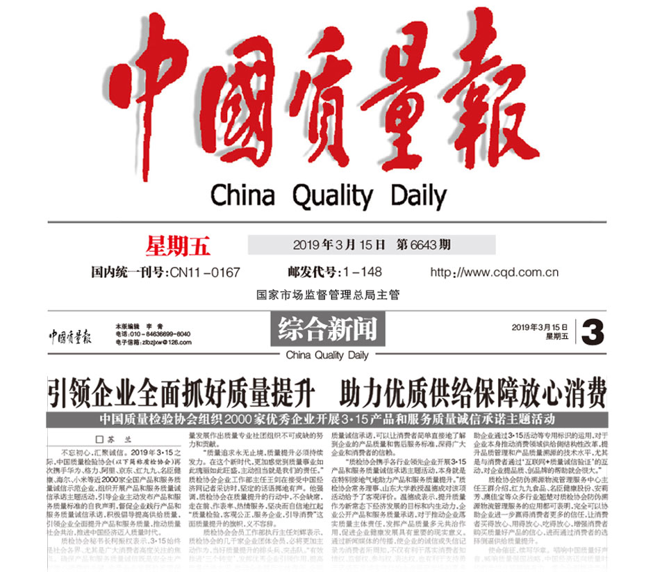 (備注:本新聞刊發于《中國質量報》2019年3月15日刊第03版)