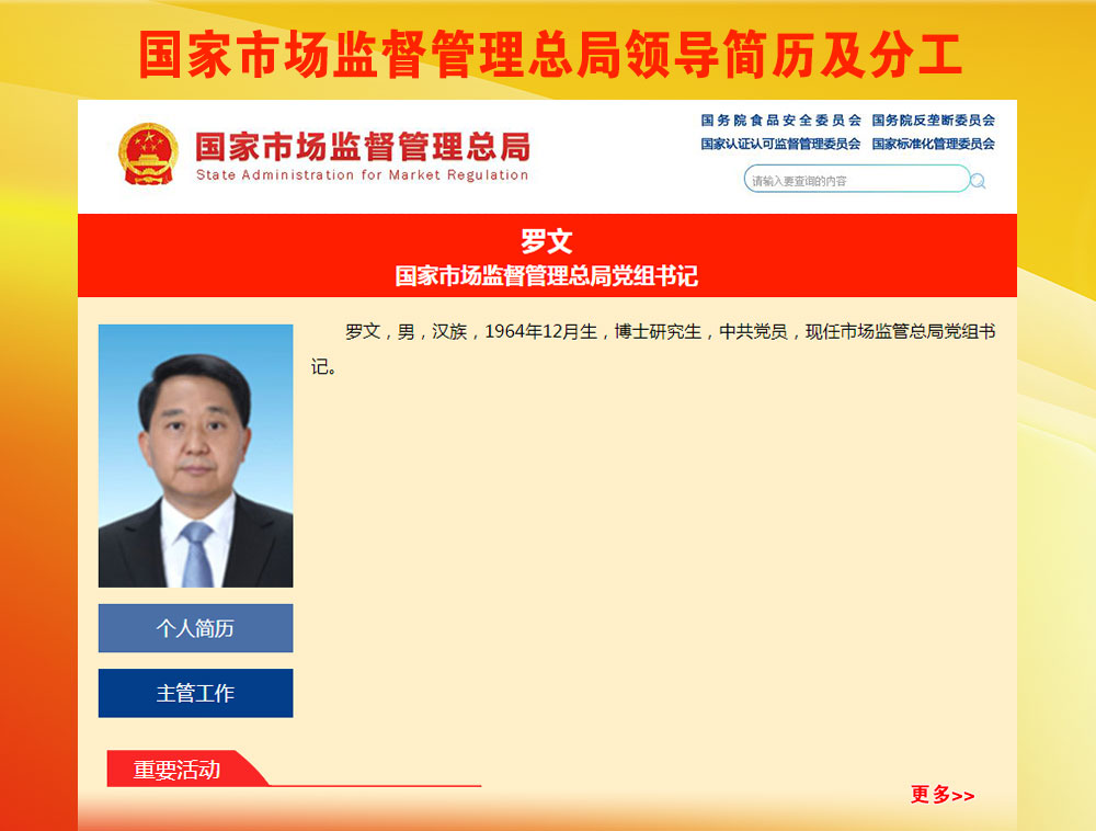 保留國務院食品安全委員會、國務院反壟斷委員會,具體工作由國家市場監督管理總局承擔。國家認證認可監督管理委員會、國家標準化管理委員會職責劃入國家市場監督管理總局,對外保留牌子。